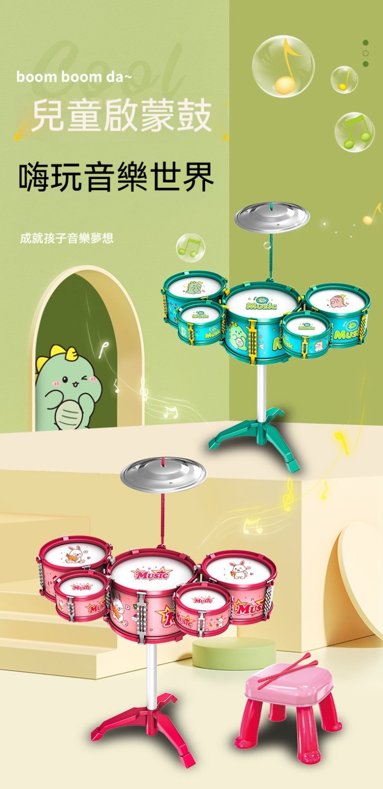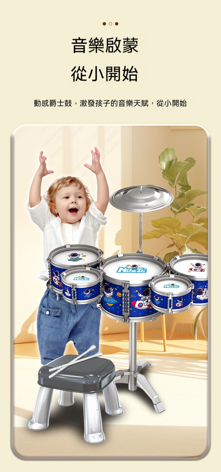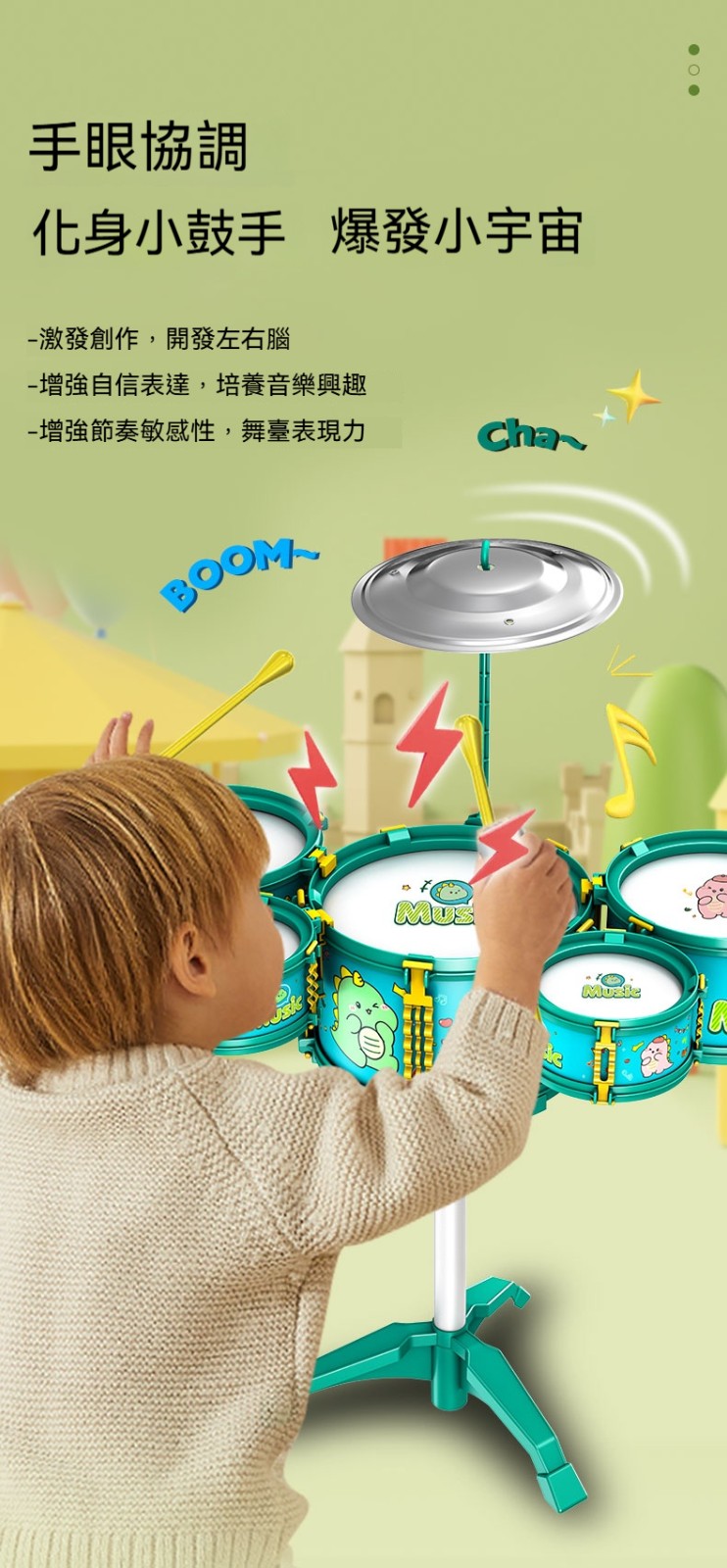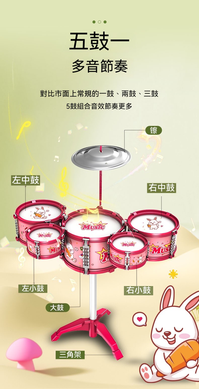 【囡仔爵士鼓~敲出音樂童年!】1-6歲專屬樂器,練節奏感+手眼協調,耍甲笑咳咳~✨【未來鼓王就是你!】五鼓一鈸專業設計,囡仔敲出音樂好感覺~