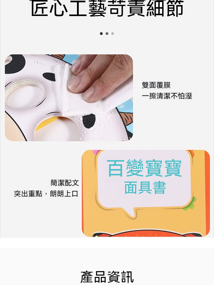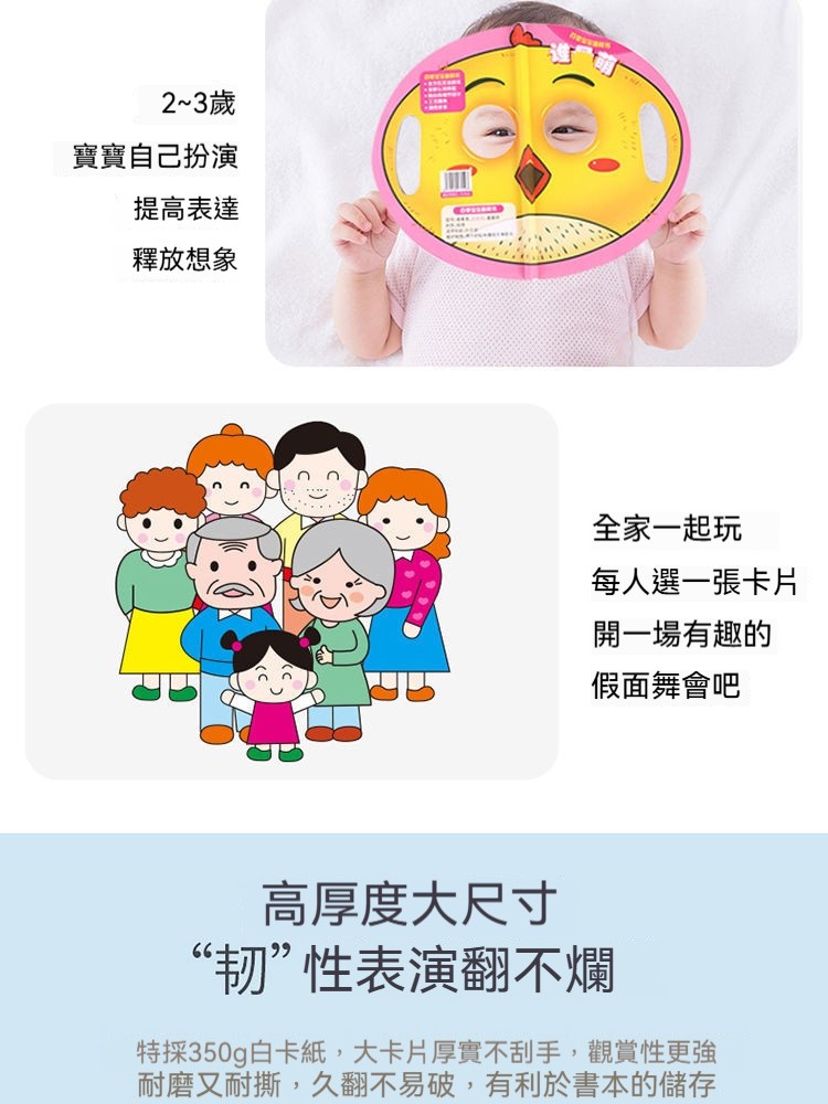 【百變寶寶面具書】27款角色任囡仔變身!躲貓貓學認知,親子互動笑嗨嗨~1️⃣ 27種角色玩不膩2️⃣ 安全材質掛保證3️⃣ 發展能力五大提升4️⃣ 出門攜帶超方便