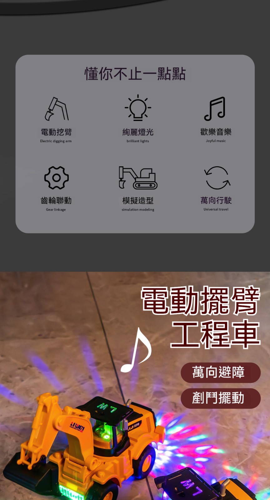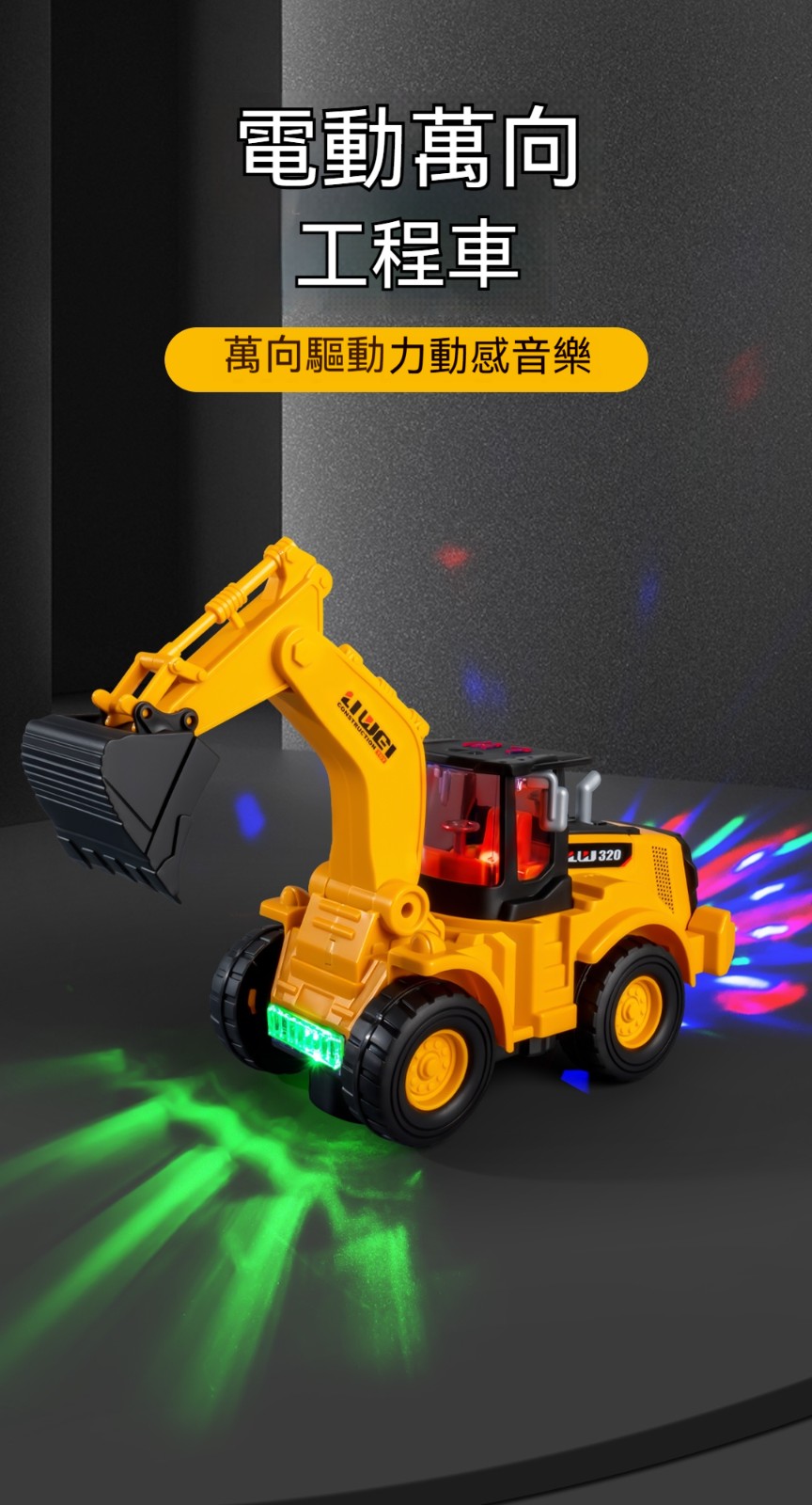 【萬向電動挖土機~囡仔的工程夢開工!】自動避障+音樂燈光,耍甲咁吶真操作~萬向行駛自動轉彎,碰著障礙物家己閃,囡仔看甲金驚奇~